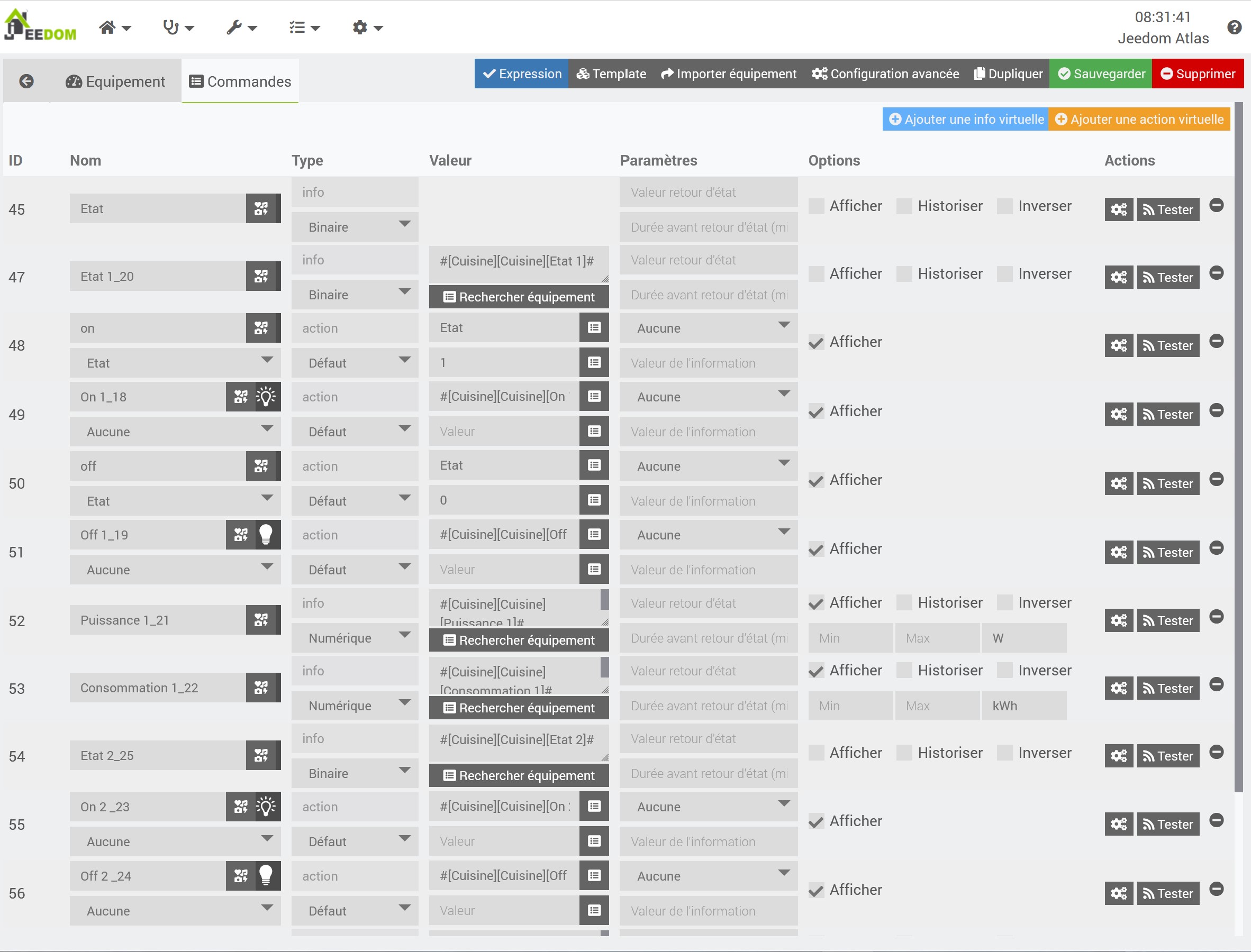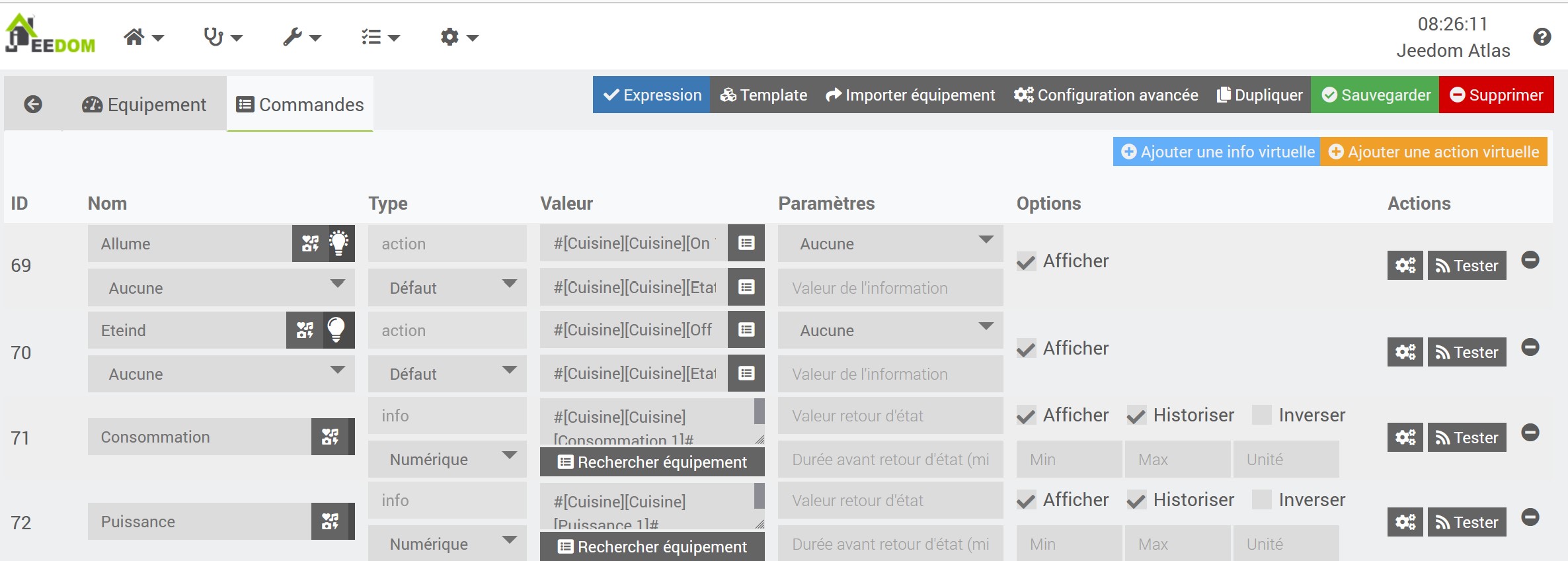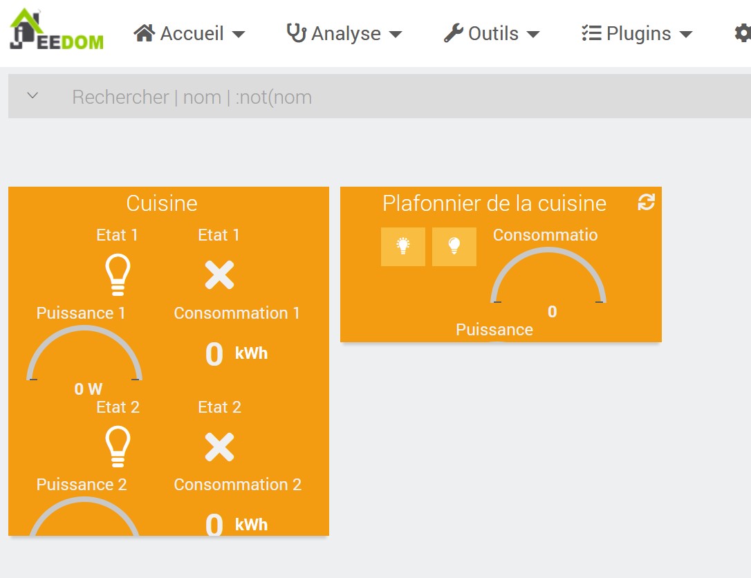 et là aussi ça marche. Sauf que j’ai 2 questions : est-ce que les infos conso et puissance ont une utilité ? Et quel nom dois-je donner au virtuel et aux commandes pour que Google comprenne « allume le plafonnier de la cuisine » ? J’ai nommé la commande « allume » et le virtuel « plafonnier de la cuisine », l’équipement se nomme « cuisine » et l’objet parent aussi.