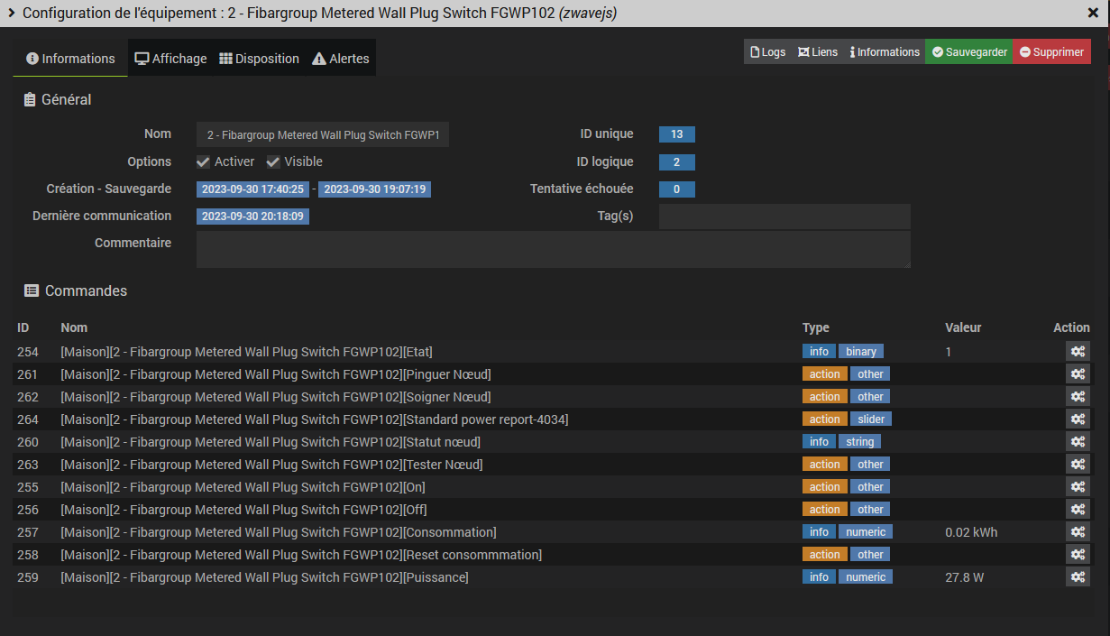 La prise apparait bien dans le réseau zwave et j’accède bien à son plugin logiciel dans jeedom.