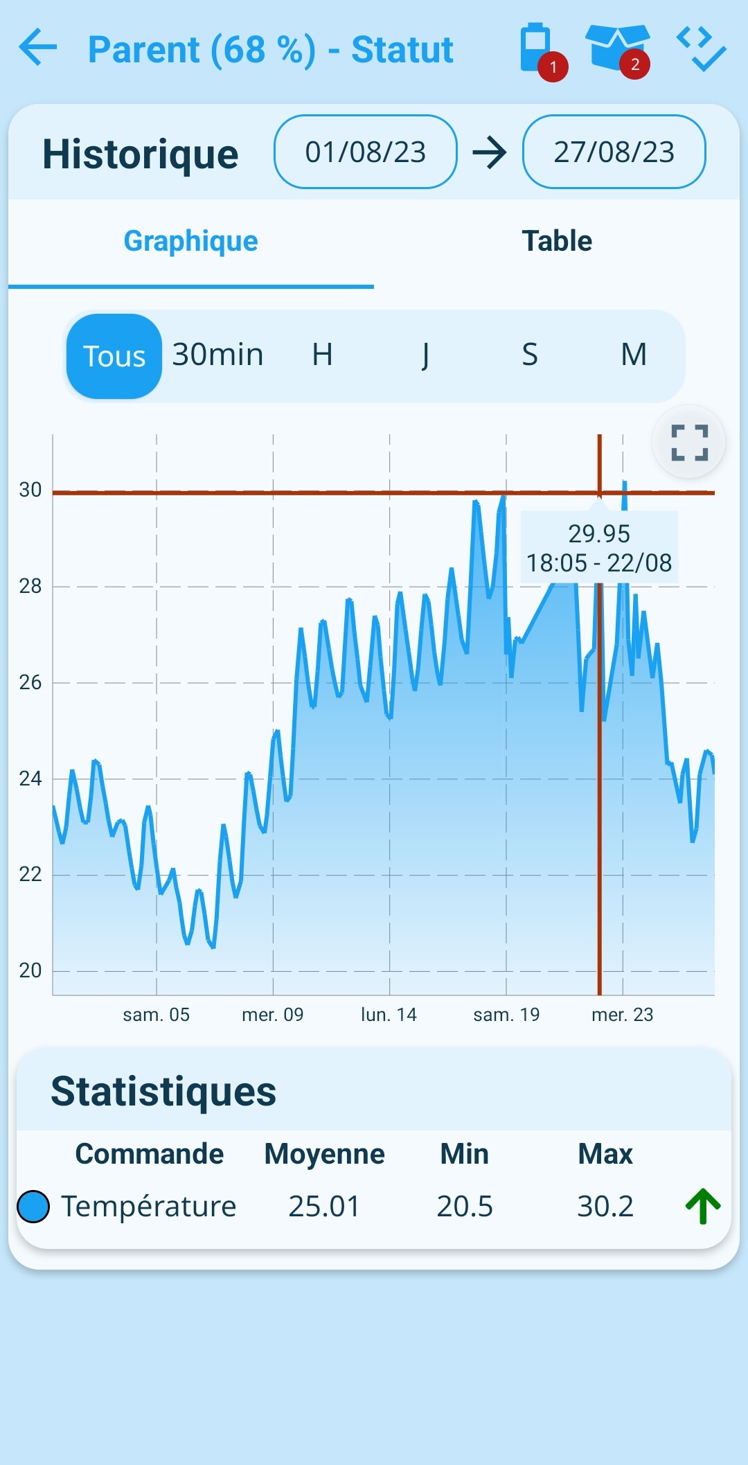 par exemple à quel jour il y a eu telle température sur une notif qui affiche une info température.