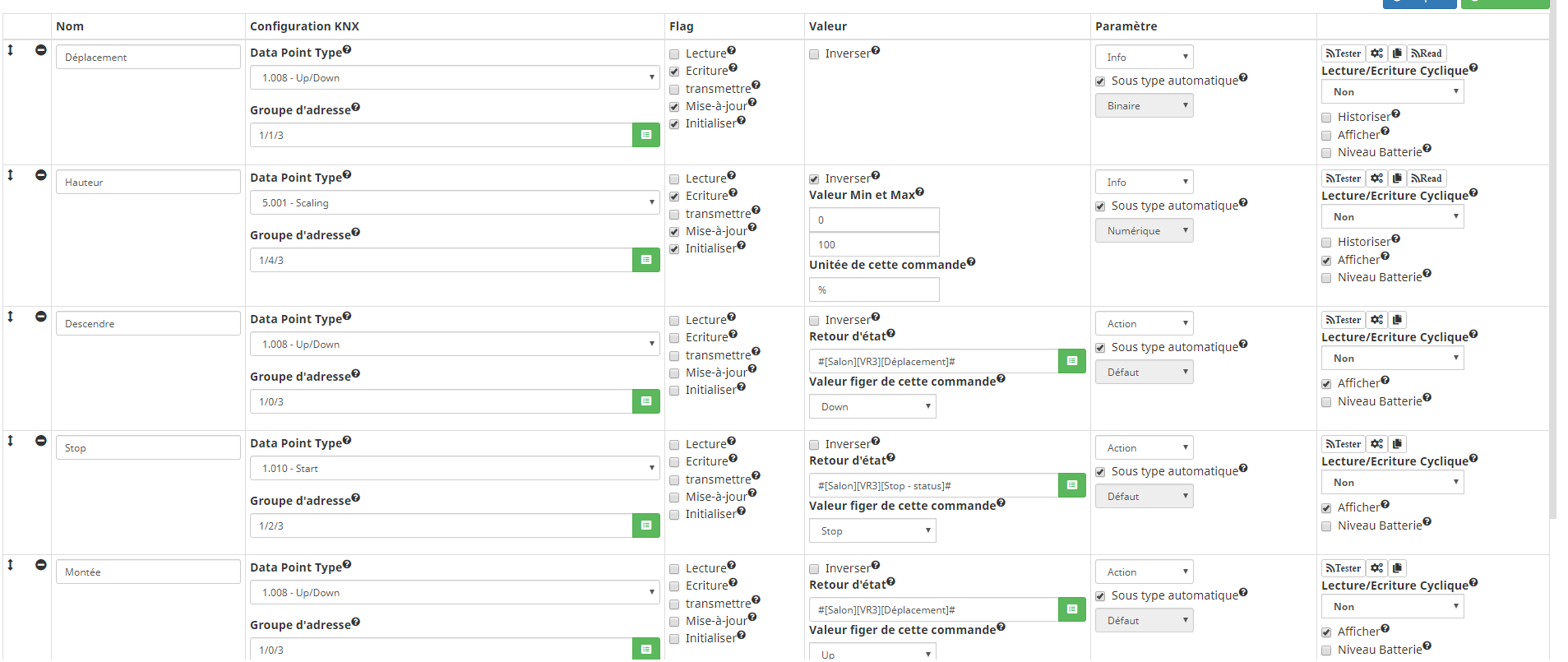 Pour « Hauteur » et « Déplacement », je pense que les flags ne sont pas correctement renseignés :