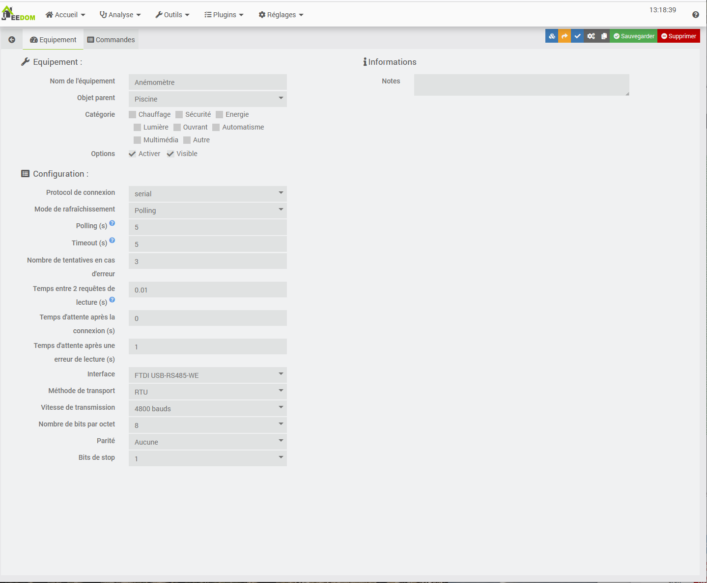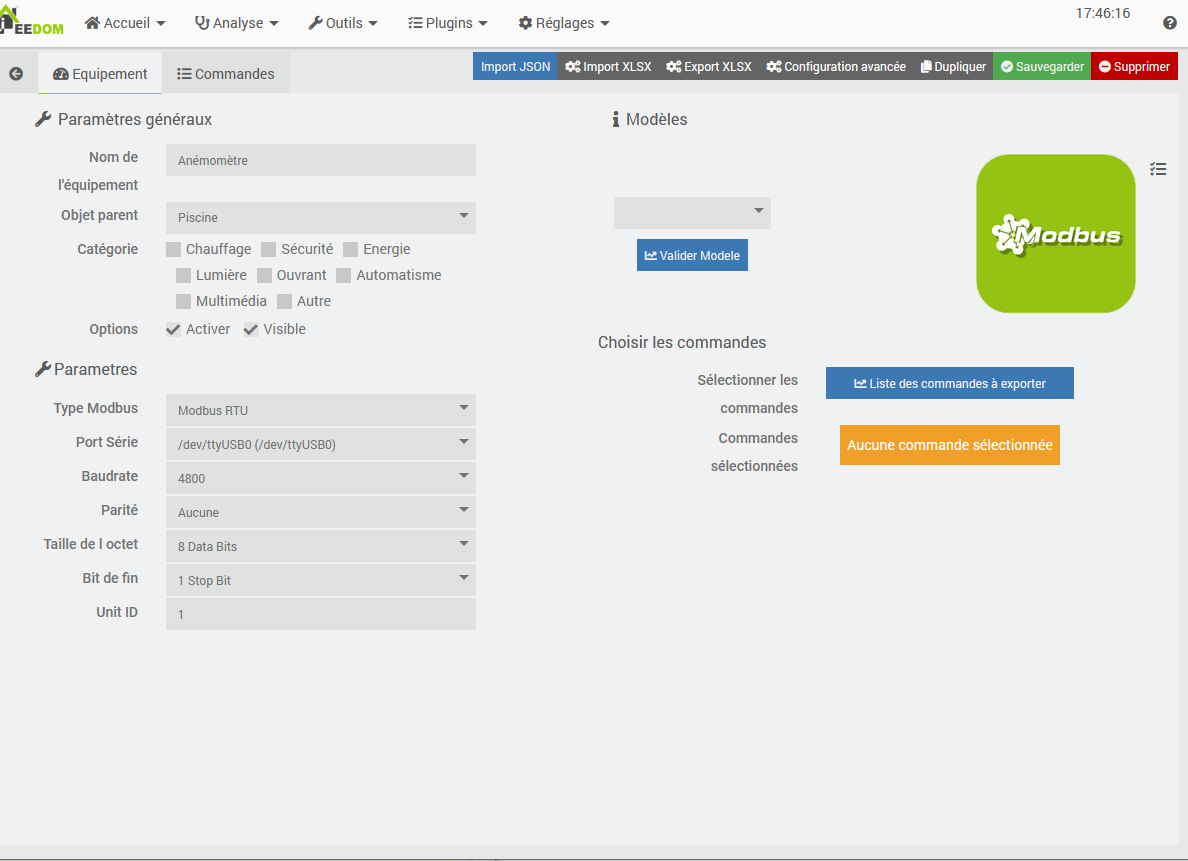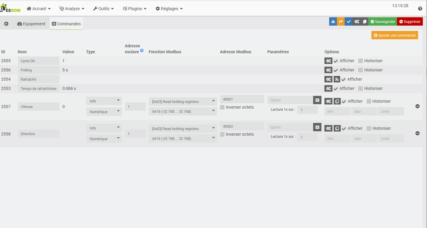 Je cherche depuis déjà une semaine avec le plugin Modbus à remonter des datas de l’anémomètre que j’ai installé.
