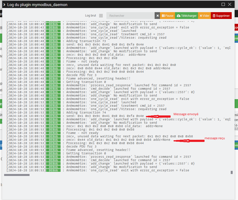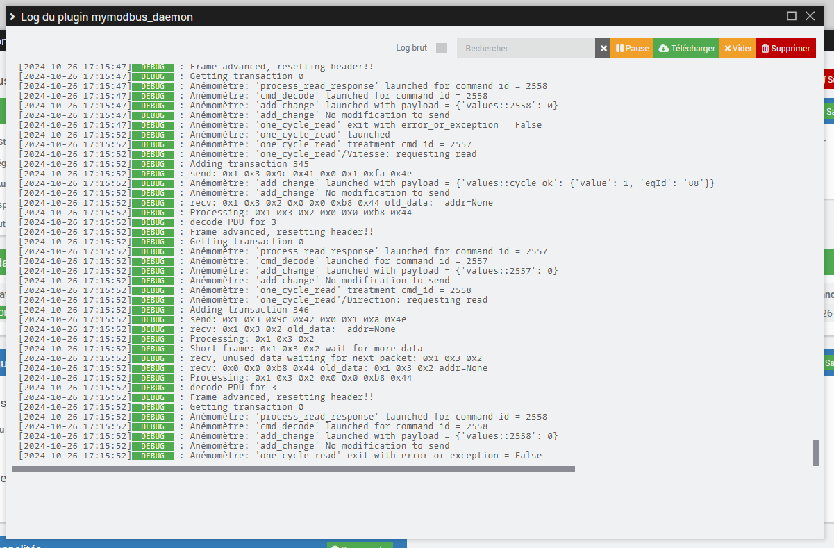 Le log debug de mymodbus_daemon est vide !