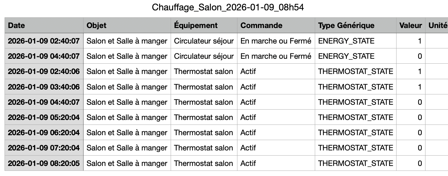 Or quand j’exporte mes données pour ce circulateur, je vois un seul « 1 » dans les datas?
