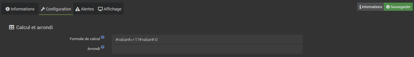 Il suffit juste, dans la configuration avancée de l’équipement, onglet configuration, d’insérer cette formule dans le champ ‹ formule de calcul › :