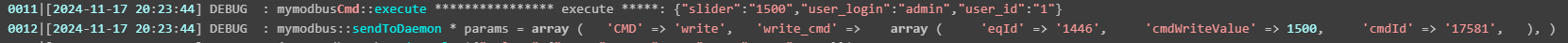 0011|[2024-11-17 20:23:44] DEBUG : mymodbusCmd::execute **************** execute *****: {"slider":"1500","user_login":"admin","user_id":"1"}