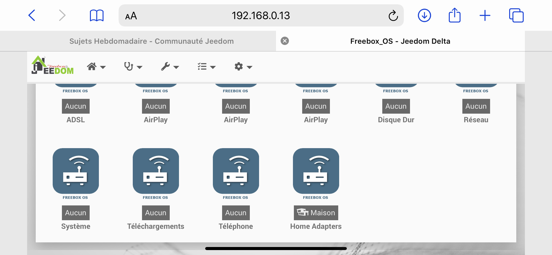 Bonjour je suis dans le flou le plus total j’arrive pas à voir mes volet (somfy io )(j’ai pas de box somfy) le disque dure n’apparaît pas non plus en faite j’ai rien qui remonte dans Jeedom j’ai bien coché les droit Accès dans freebox os pouvez vous m aider je doit rater une manipulation je fait tout les manipulations avec mon téléphone (iPhone X) il faut il obligatoirement un pc pour pour faire les Paramétrage ? Je vous est mi quelque captur écran de divers page merci