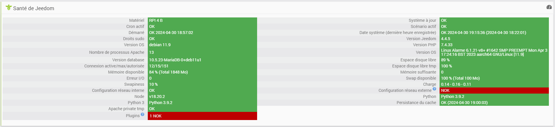 j’ai fait une nouvelle installation de Jeedom, sur un Raspberry 4 B en SSD.