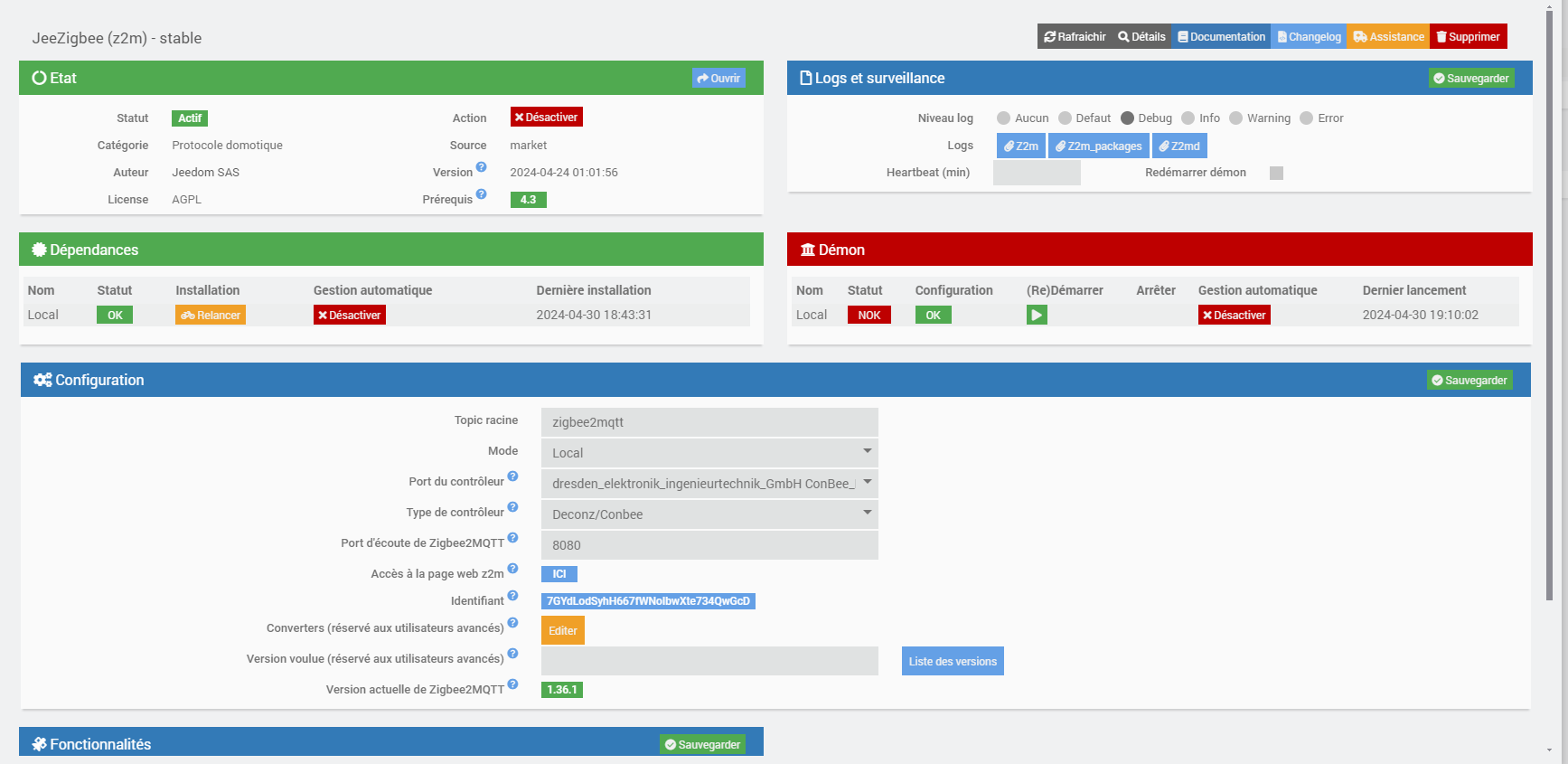 [2024-04-30 18:59:45] ERROR : Impossible de démarrer le démon Zigbee2mqtt, consultez les logs
