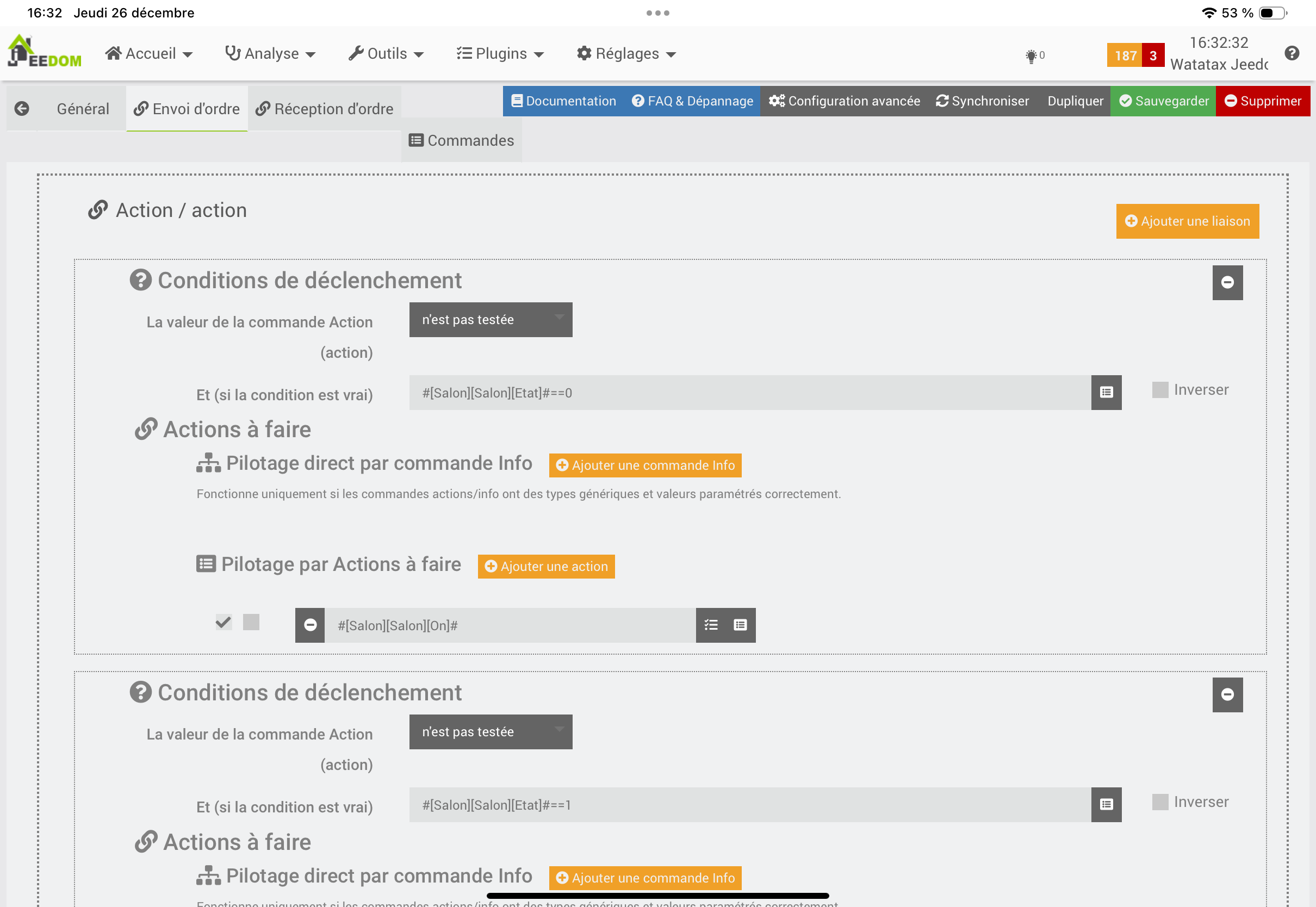 Pour l’action sur bouton à la restauration je n’en avais pas remis encore, j’ai fait pour montrer en exemple mais j’avais déjà des lenteurs sans avoir remis ça sur les boutons aqara