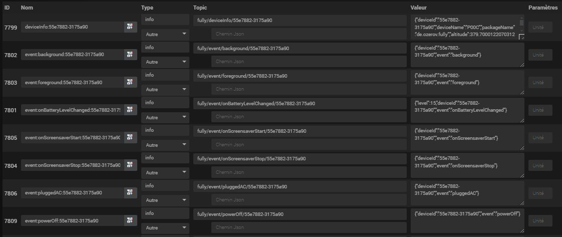Est-ce au niveau des paramètres MQTT Device Info Topic et MQTT Event Topic que je dois intervenir ? Ou est-ce tout simlement pas réalisable ?