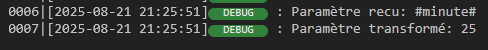 Si j’appelle ma fonction directement avec une valeur numérique, ça fonctionne parfaitement. mais lorsque je l’appelle avec #minute# je récupère cette chaine de caractère de 8 caractères qui est inutilisable par php.