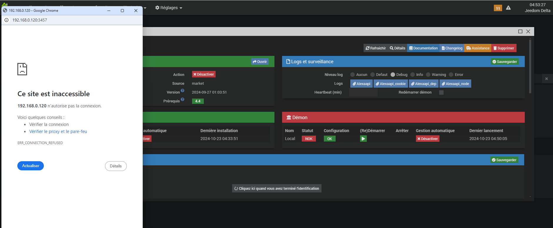 impossible de généré les cookies pour remettre en marche le plugin alexa.