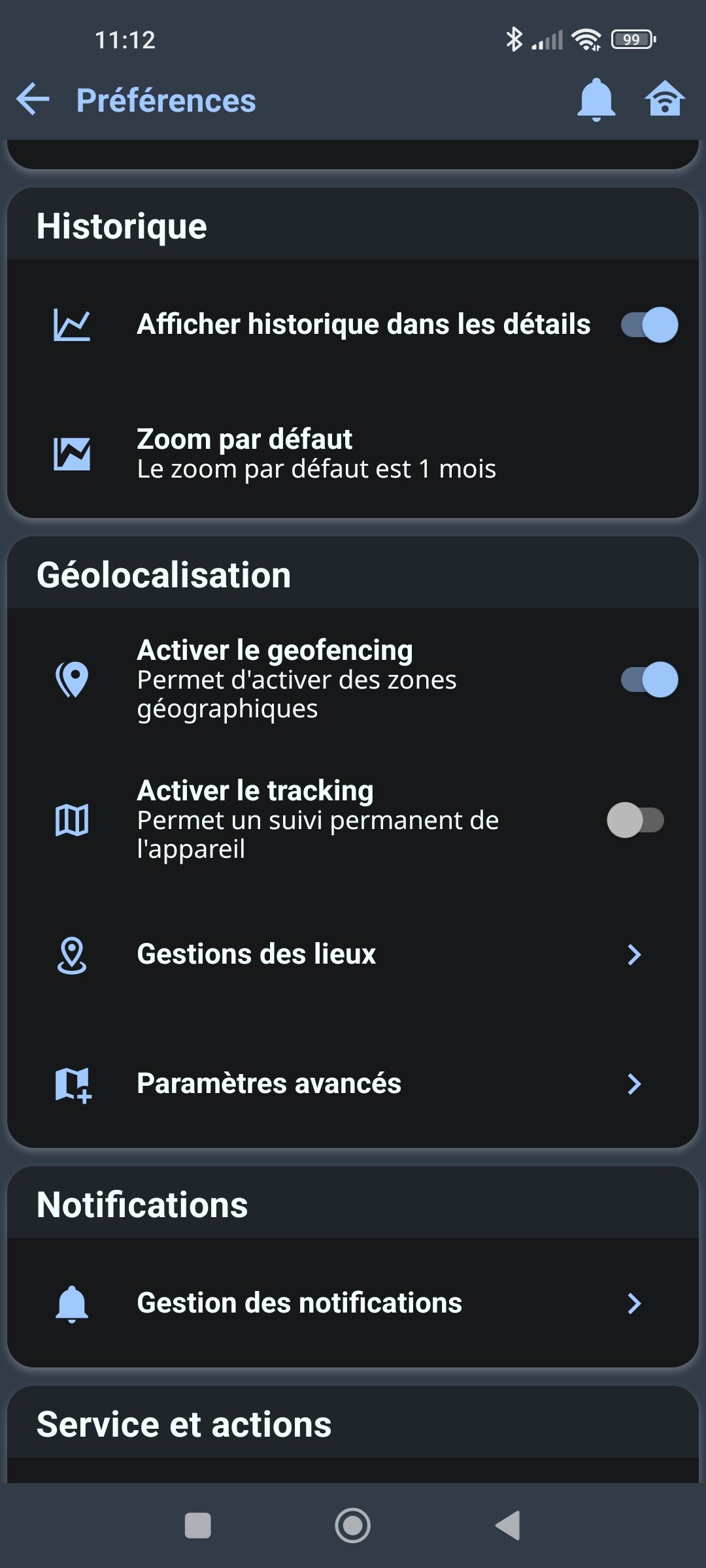 J’ai paramétré une 1ère zone correspondant à « Proche maison » avec un rayon de 70m puis une 2ème zone un peu plus loin de chez moi à environ 200m « Entrée lotissement » et avec un rayon de 60m et j’ai historisé.