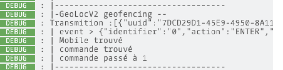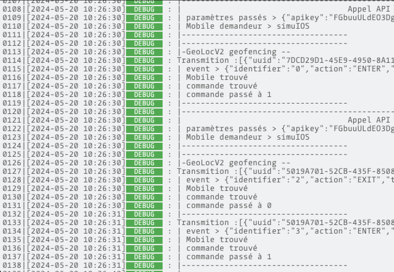 Mon mobile discute pourtant bien avec le plugin … j’ai bien les notifications. Et dans d’autre log je vois bien dans les params le « IQ » qui correcpond à mon « Id Mobile » … mais pas pour la géoloc.
