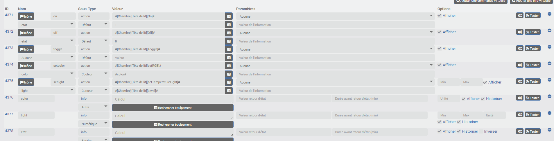 j’ai fait ça en virtuel mais cela ne marche pas (mes états, couleur, luminosité ne fonctionnent pas).