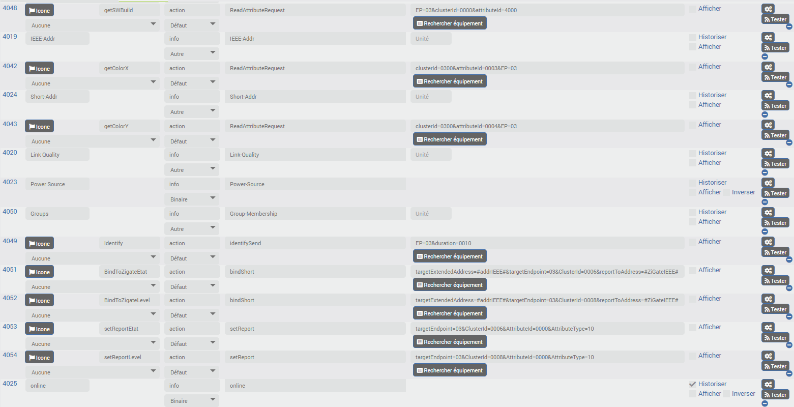 Penses à bien configurer les 7 types génériques pour les 7 commandes, tant que c’est NOK dans le plugin GSH ce n’est pas la peine d’aller plus loin.