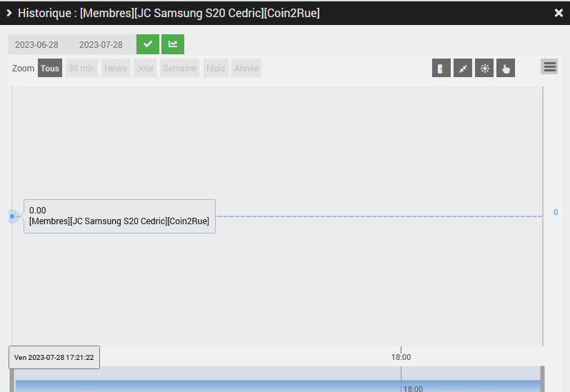 Effectivement dans l’historique, la seule valeur enregistre est « 0 » alors qu’elle aurait du passer a « 1 » quand j’y suis allé toute à l’heure. J’y suis allé 2 fois à pied avec mon tel pour tester mais je ne vois rien dans l’historique. étrange non?