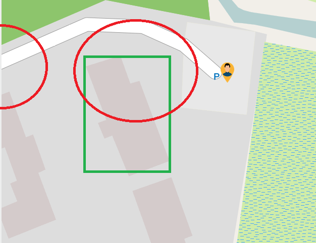 Les ronds rouge = zone domicile et zone coin de rue.