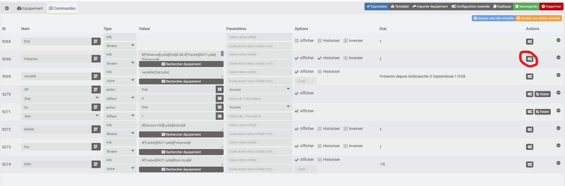 3- Je rentre chez moi, mon NUT passe présent (NUT à 1) alors le scénario se désactive.