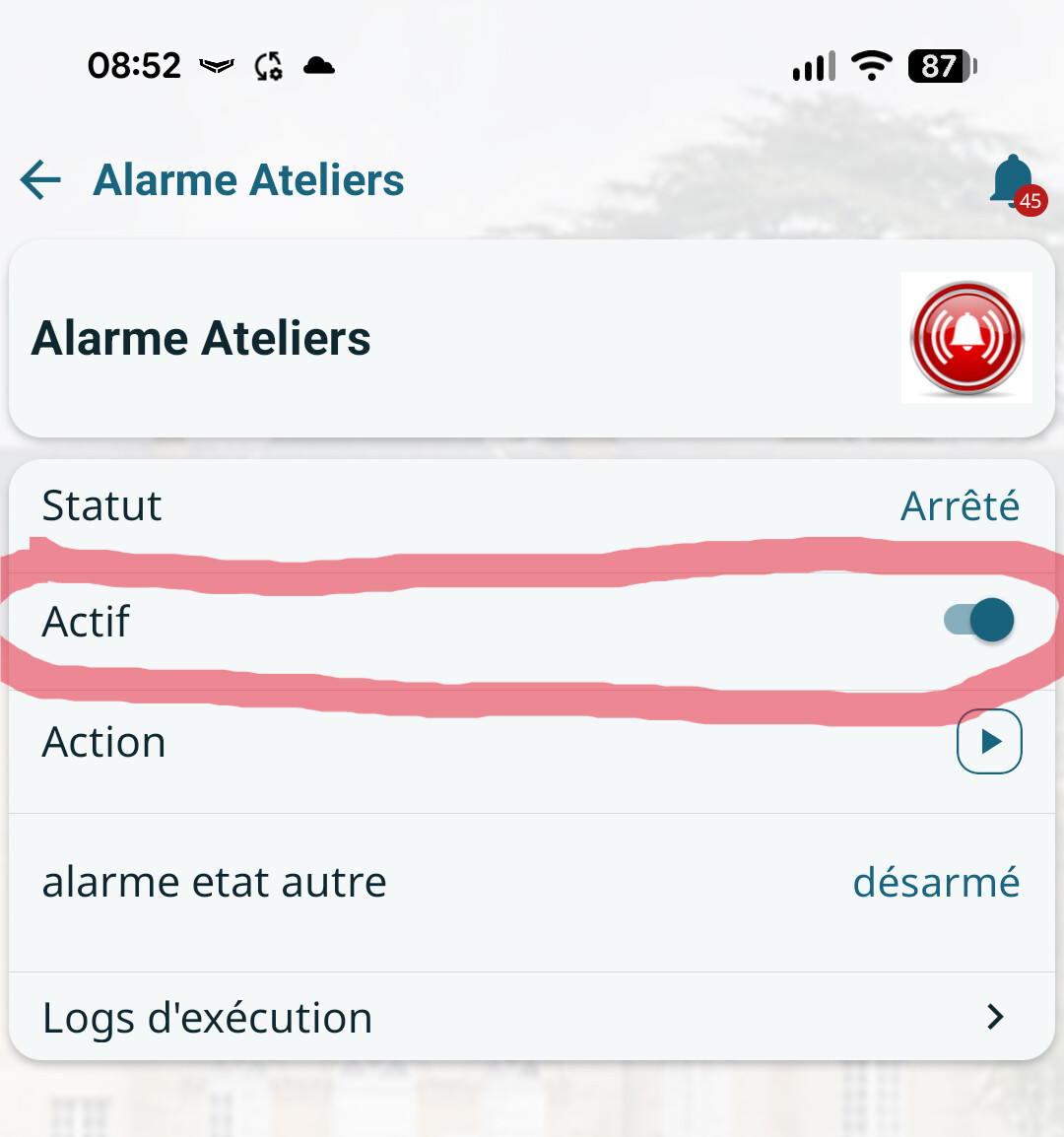 Mais j’ai un soucis car dans le design d’un widget « scénario » des personnes ne cliquent pas sur la flèche d’exécution mais rentre dans le widget et décoche la zone « actif » et pour le coup il me désactive systématiquement les scénarios…