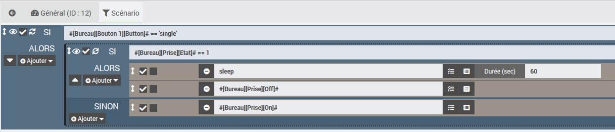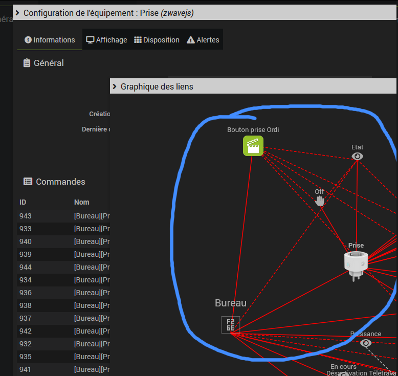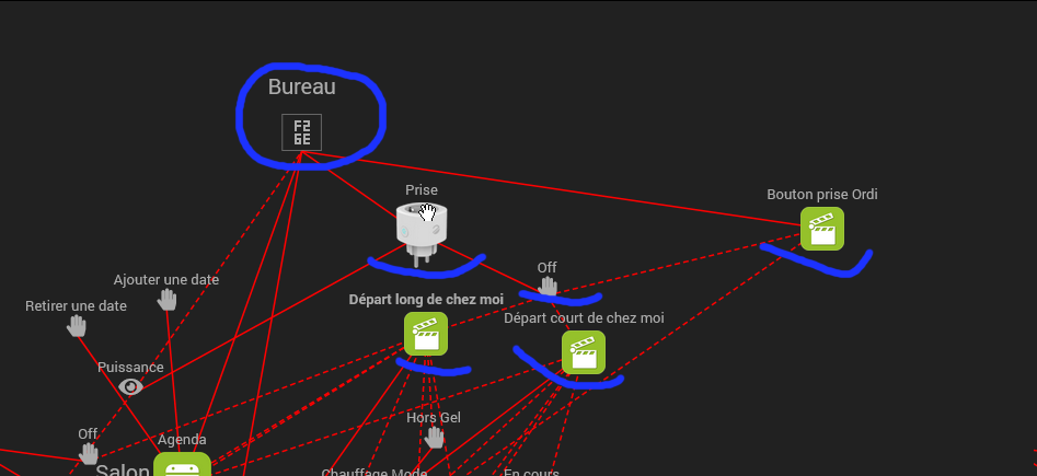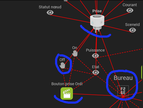 j’ai trouvé un comportement bizarre dans le graphique de lien. Sur ma prise du bureau, j’ai plusieurs scénarios qui utilise on et off. Mais en vue côté prise, on ne voit que le scénario ‹ Bouton prise ordi ›.