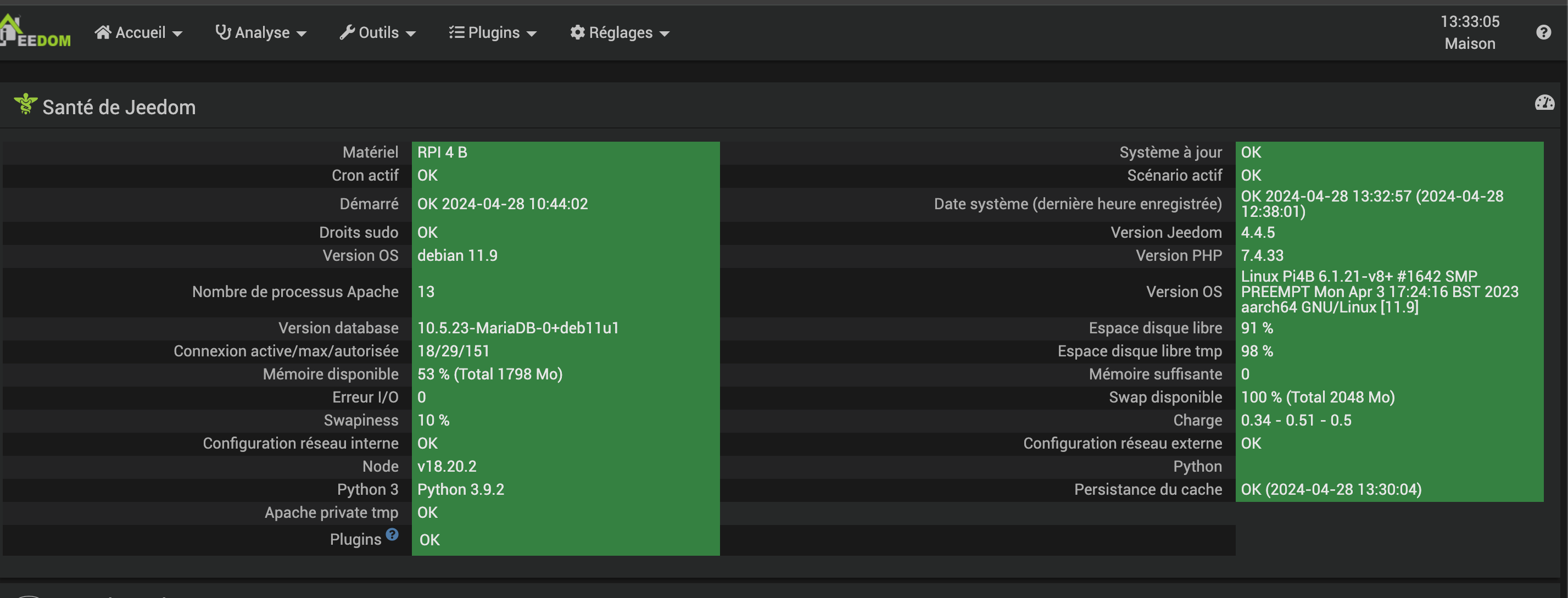 jeedom est accessible ce matin, pas de problème niveau charge 0,6 et il n’est plus lent
