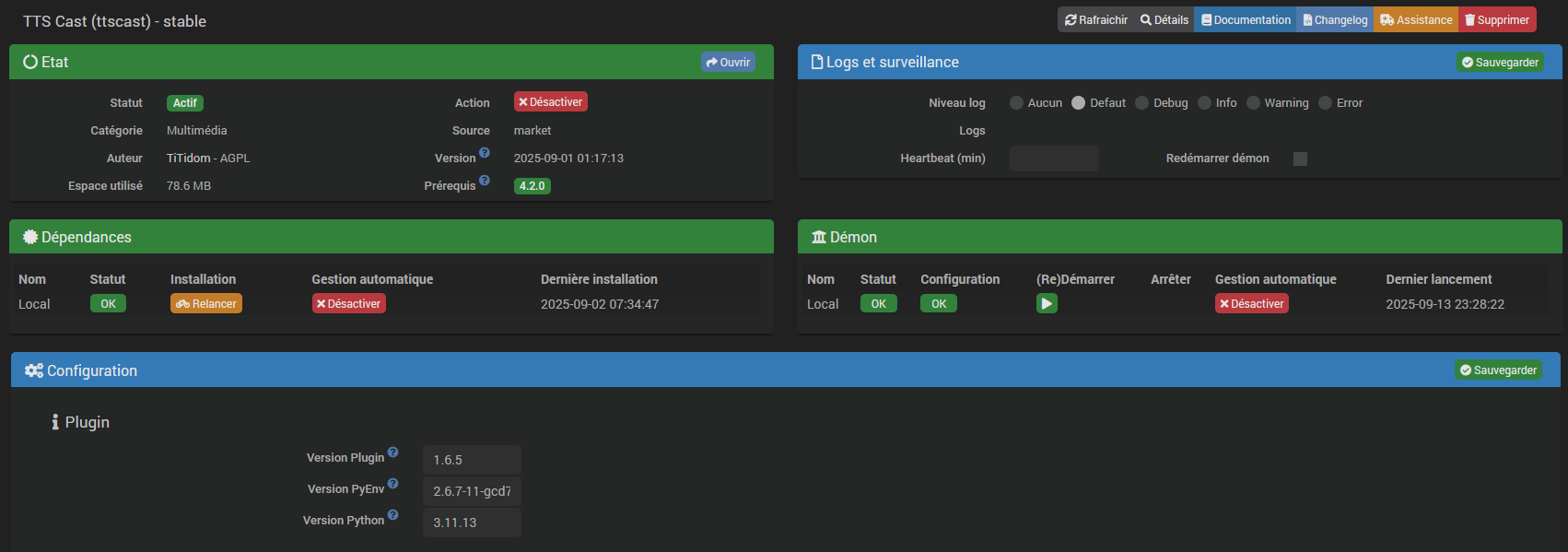J’ai testé également la diffusion du premier TTS sur l’enceinte Salon et cela fonctionne bien, en entier et le retour volume également.