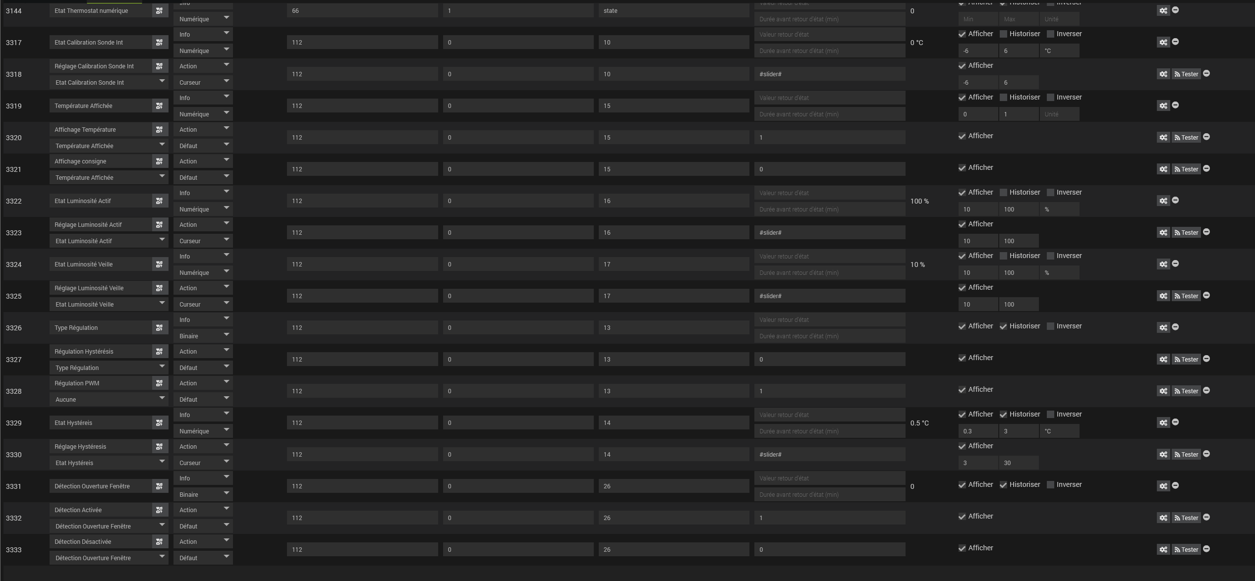 Ps: pour les commandes état consigne il faut dans Formule de calcul mettre (#value#/10) et pour réglage consigne mettre (#value#*10).