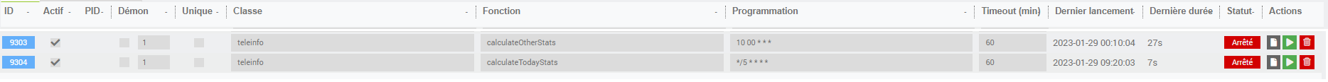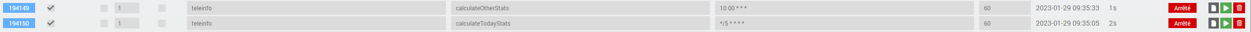 La case « actif » est elle cochée pour calculateOtherStats ? Lorsque tu cliques sur l’icône vert au bout de la ligne calculateOtherStats est ce que tu as la stat d’hier qui apparait dans ton historique?