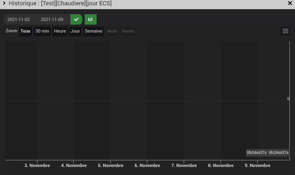 j’ai des contacts sur ma chaudiere pour savoir le temps de fonctionnement du chauffage et de la production d’eau chaude en H:min:s. J’aimerais historiser ces valeurs mais pour obtenir ce type d’affichage, je dois choisir "autre " en info et je n’arrive pas à les historiser, j’ai des valeurs bizarres! Est il possible d’avoir un graphique simplement ou faut il tout modifier?