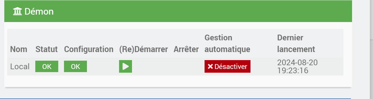 quand je fais un refresh de l’équipement j’ai systématiquement le message mais log _demon ne change pas.