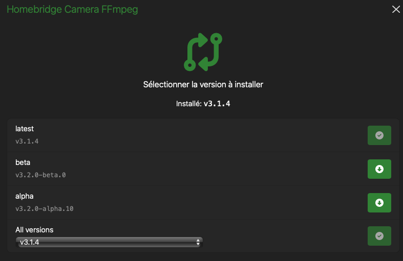 Le plugin reste en version homebridge-camera-ffmpeg @ 3.1.4 et je ne peux pas le passer manuellement en v4