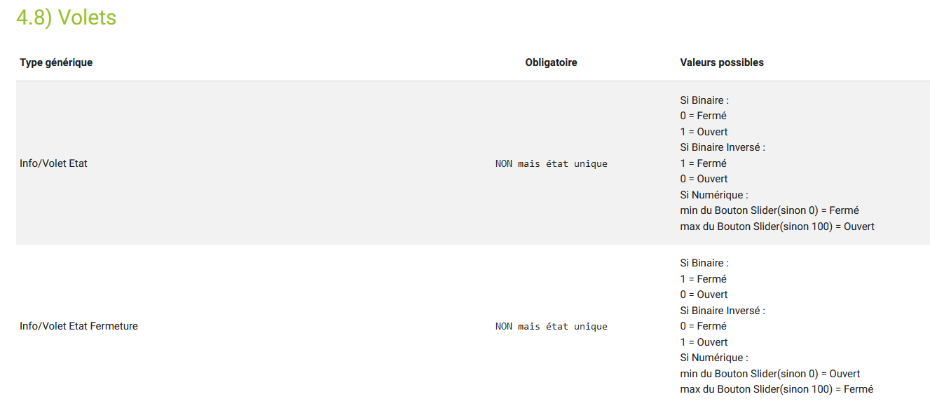 Oui le type générique volet à la base fonctionne sur le principe d’ouverture, donc 0% ouvert ben c’est fermé et 100% c’est ouvert.