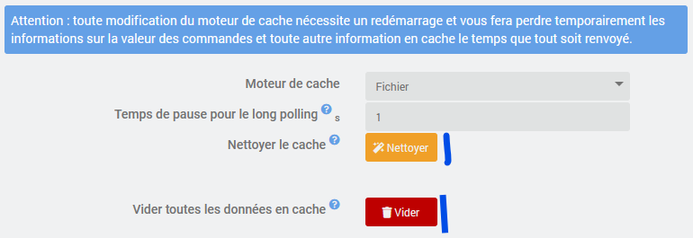 Plutôt que de supprimer le répertoire /tmp/jeedom il y a des boutons pour le cache sur l’onglet Cache de la config de Jeedom
