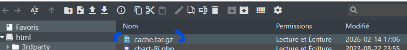 J’ai d’ailleurs essayé d’extraire et supprimé le fichier cache du backup mais je ne sais pas comment refaire un fichier tar. gz