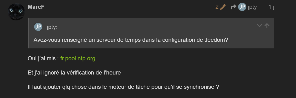 Si je comprends bien, le serveur de temps de Jeedom sur la Smart, c’est :