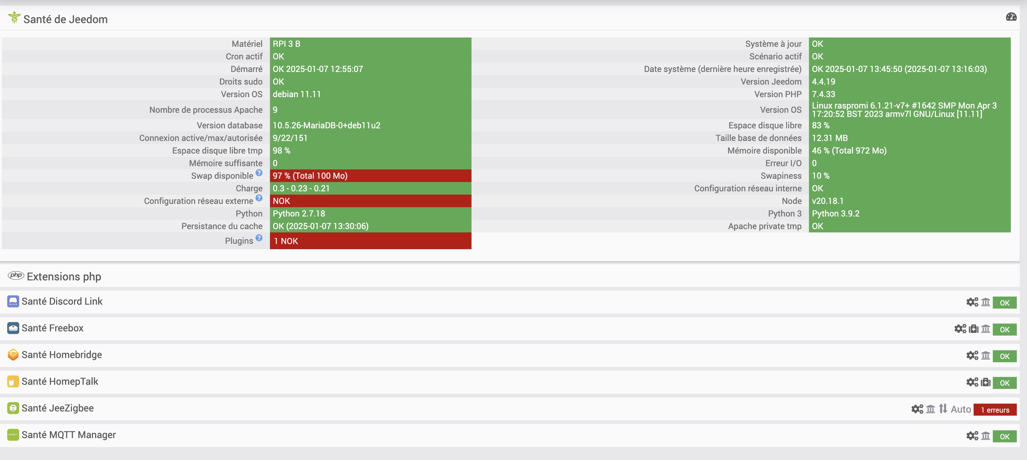 tu peux mettre une capture de ta page santé et surtout les logs pour qu’on puisse regarder d’où vient le problème.