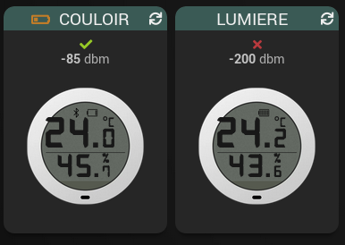 J’ai trouver le code - serais tu comment faire pour avoir le signe réseau car pour moi je n’ai pas cette donnée dans mon thermomètre (pas de ID correspondant) et si je met la valeur 1 au type Présent ca renvois une erreur « ID inconnu »