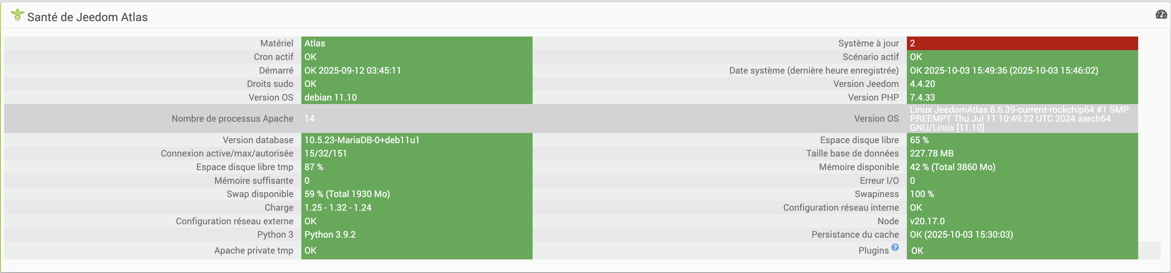 Voici la page santé: