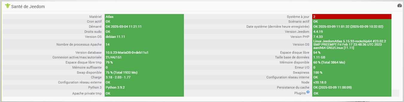 J’avais demandé la page de santé pour voir sur quel hardware tourne ton Jeedom car il y a des config particulières à faire si l’on est sur Proxmox. Mais ce n’est pas ton cas.