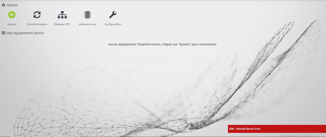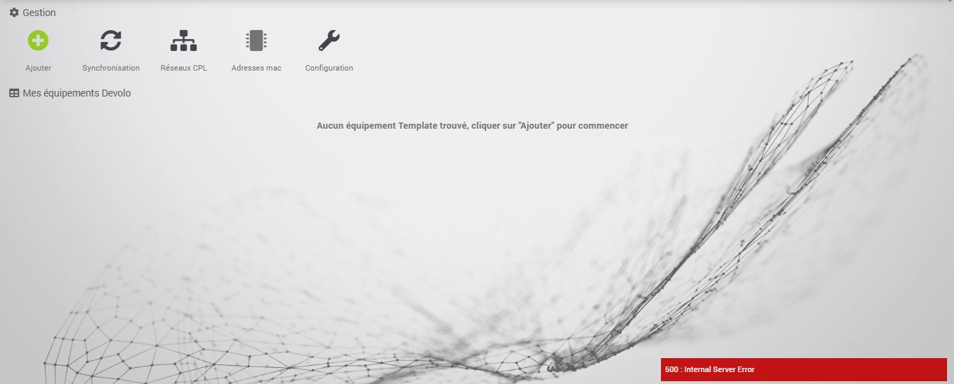 Le texte « Aucun équipement template … » est une erreur. Il faut lire « Aucun équipement Devolo … » Je corrigerai ce texte dans la prochaine mise à jour.