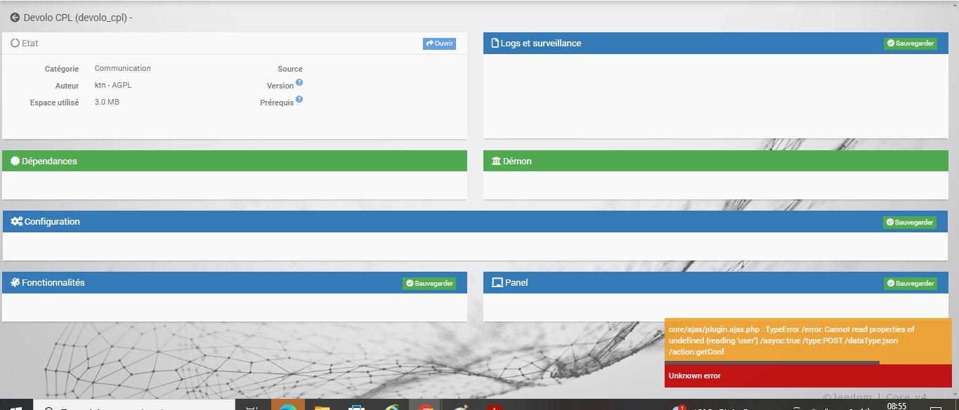 A la lecture des log, je pense que tes équipements Devolo sont correctements créés mais qu’il y a un problème PHP à l’affichage de la page.