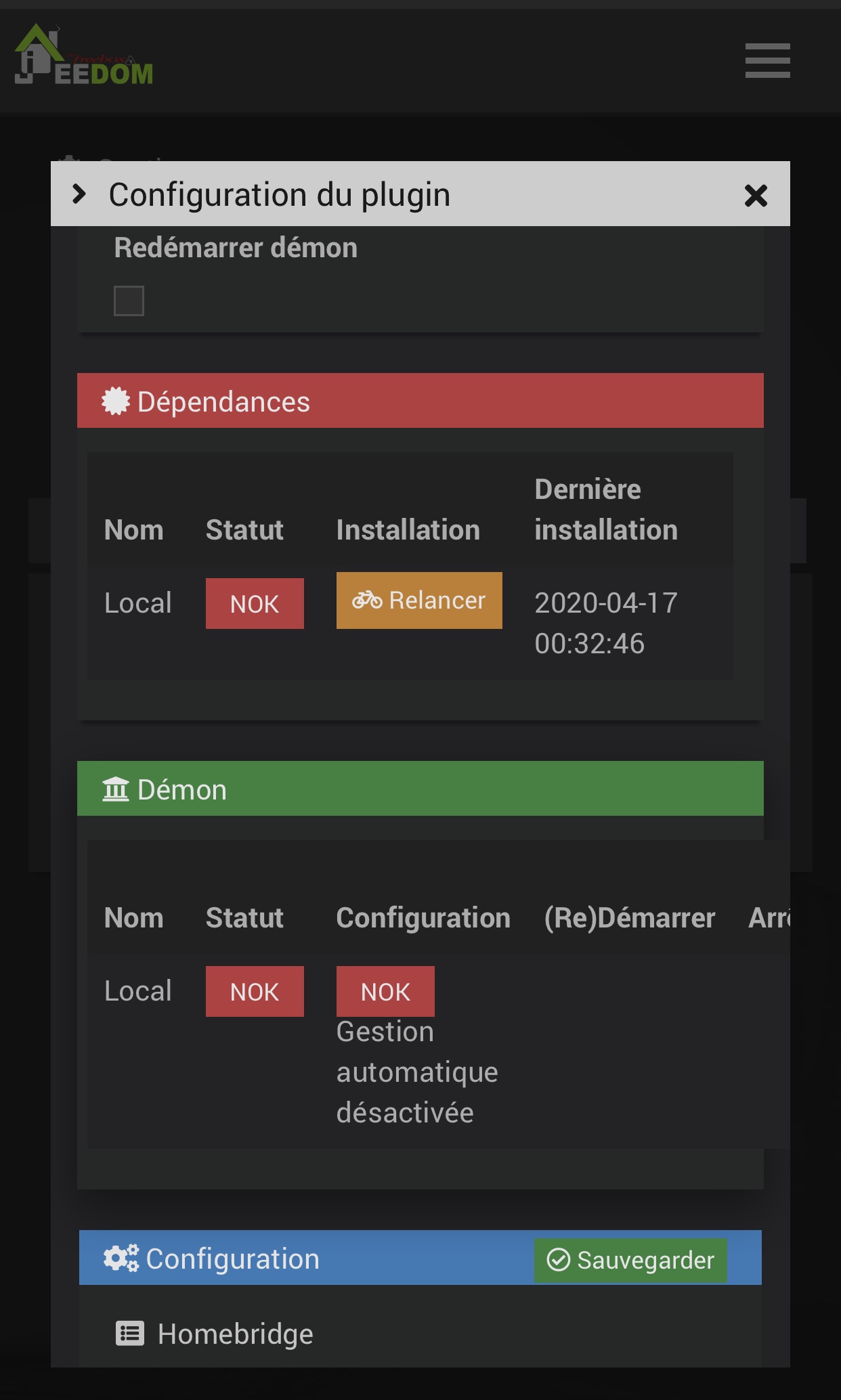== Erreur à l’étape : Installation de Homebridge master, veuillez patienter svp