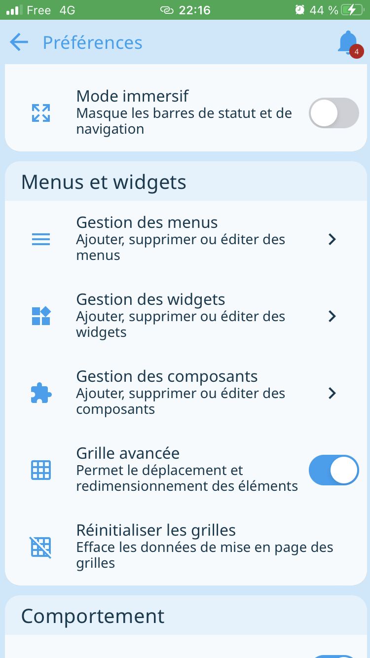 Je me rends compte que je ne parviens plus à choisir Mode de grille Avancé, que ce soit sur un item « Menu du haut » ou « Menu du bas ».