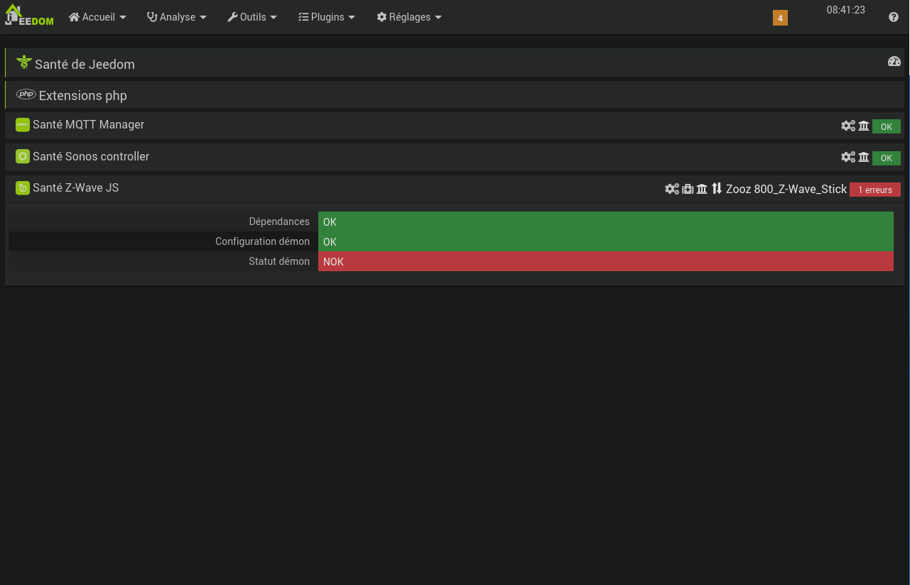 Le Démon de ZwaveJS reste NOK. J’ai vu plusieurs posts qui demandaient de relancer les dépendances, j’ai donc essayé plusieurs fois de relancer les dépendances de MQTT et de Zwave JS.