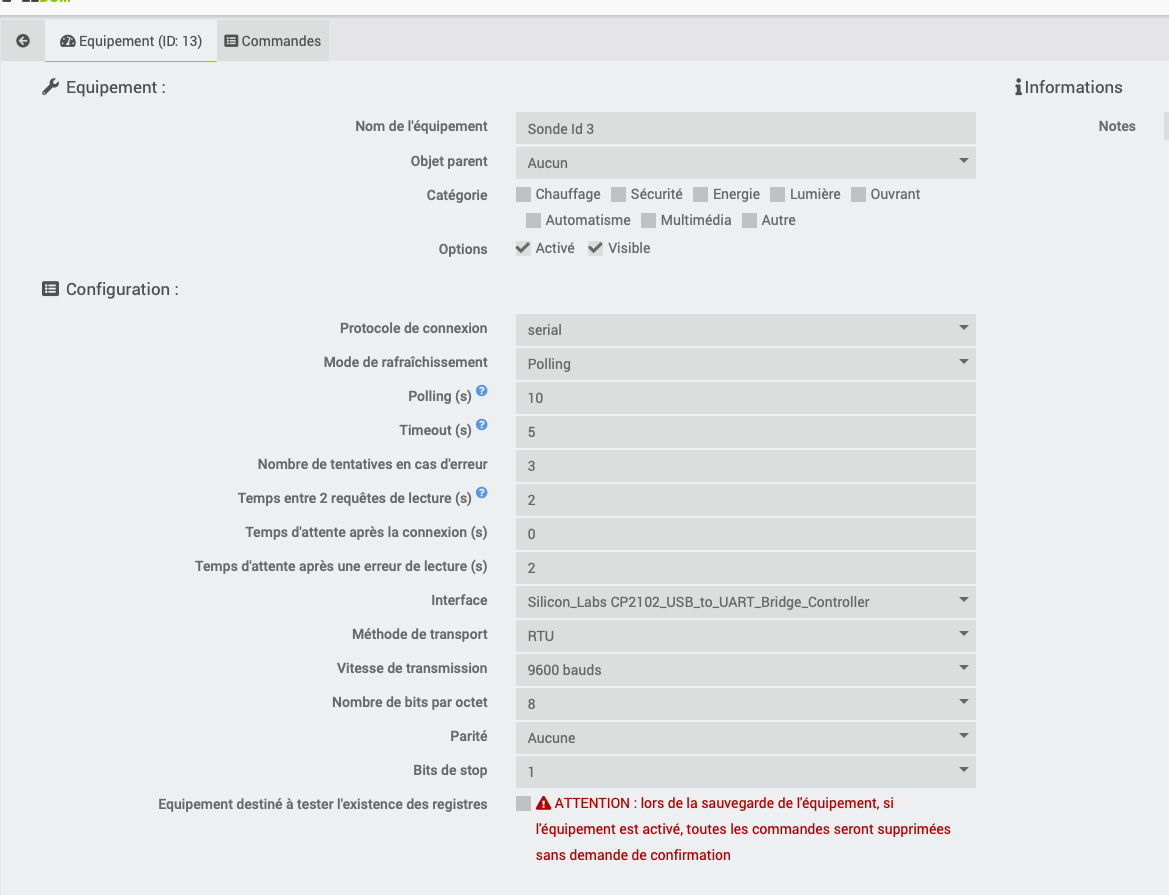 [2025-08-28 18:05:31][ERROR] : Sonde Id 1/Niveau: exception during read request on device id 1, address 256 -> Modbus Error: [Connection] Not connected[AsyncModbusSerialClient /dev/serial/by-id/usb-Silicon_Labs_CP2102_USB_to_UART_Bridge_Controller_0001-if00-port0:0]