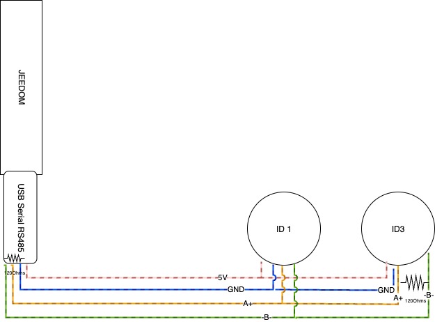J’ai un bus modbus avec 2 sondes respectivement ID1 et ID3, le bus est terminé aux extrémités par une résistance 120Ohms, j’utilise une clef usb/série RS 485 DSD TECH SH-U10 Convertisseur USB vers RS485 pour Modbus