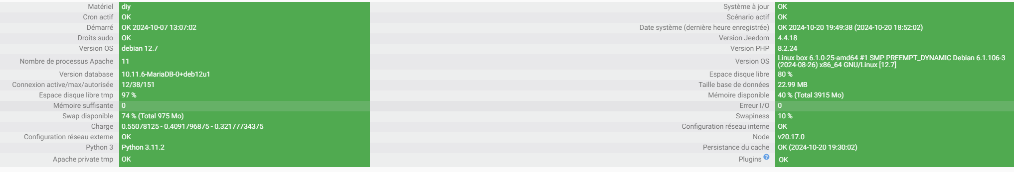 Santé Jeedom :