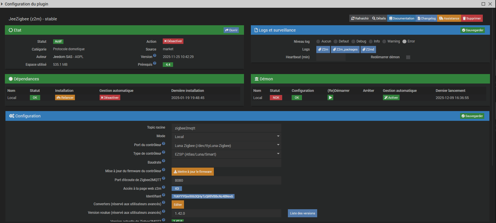 Je viens de mettre à jour le core et jeezigbee.