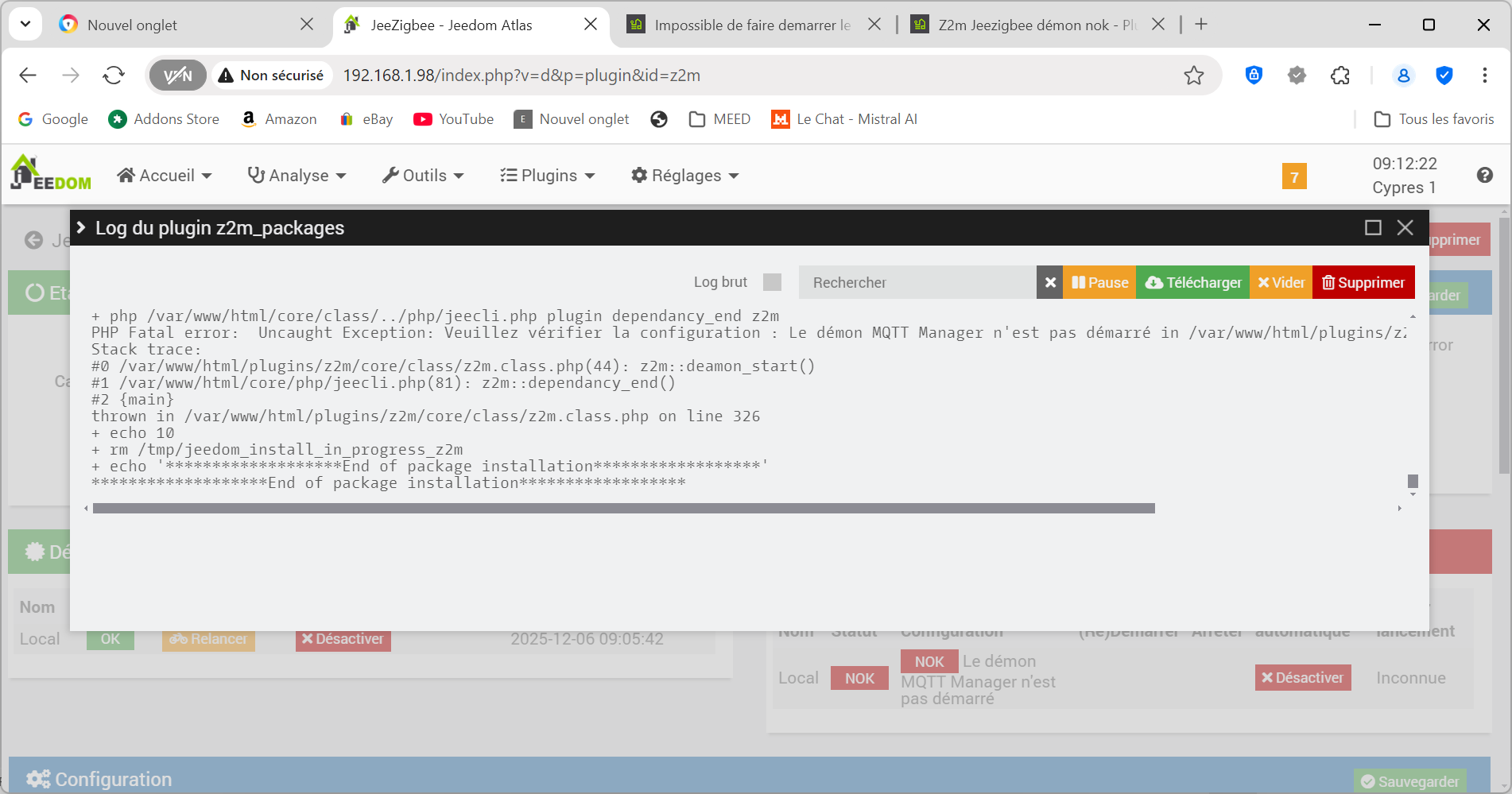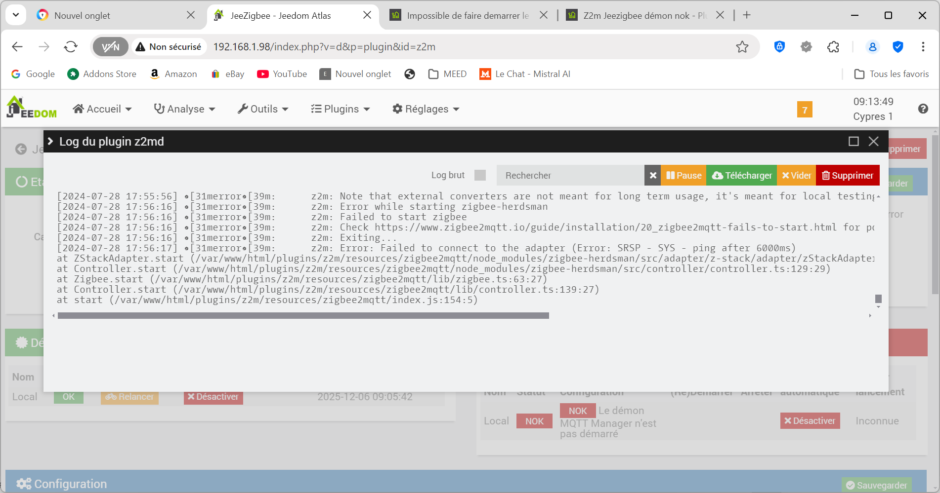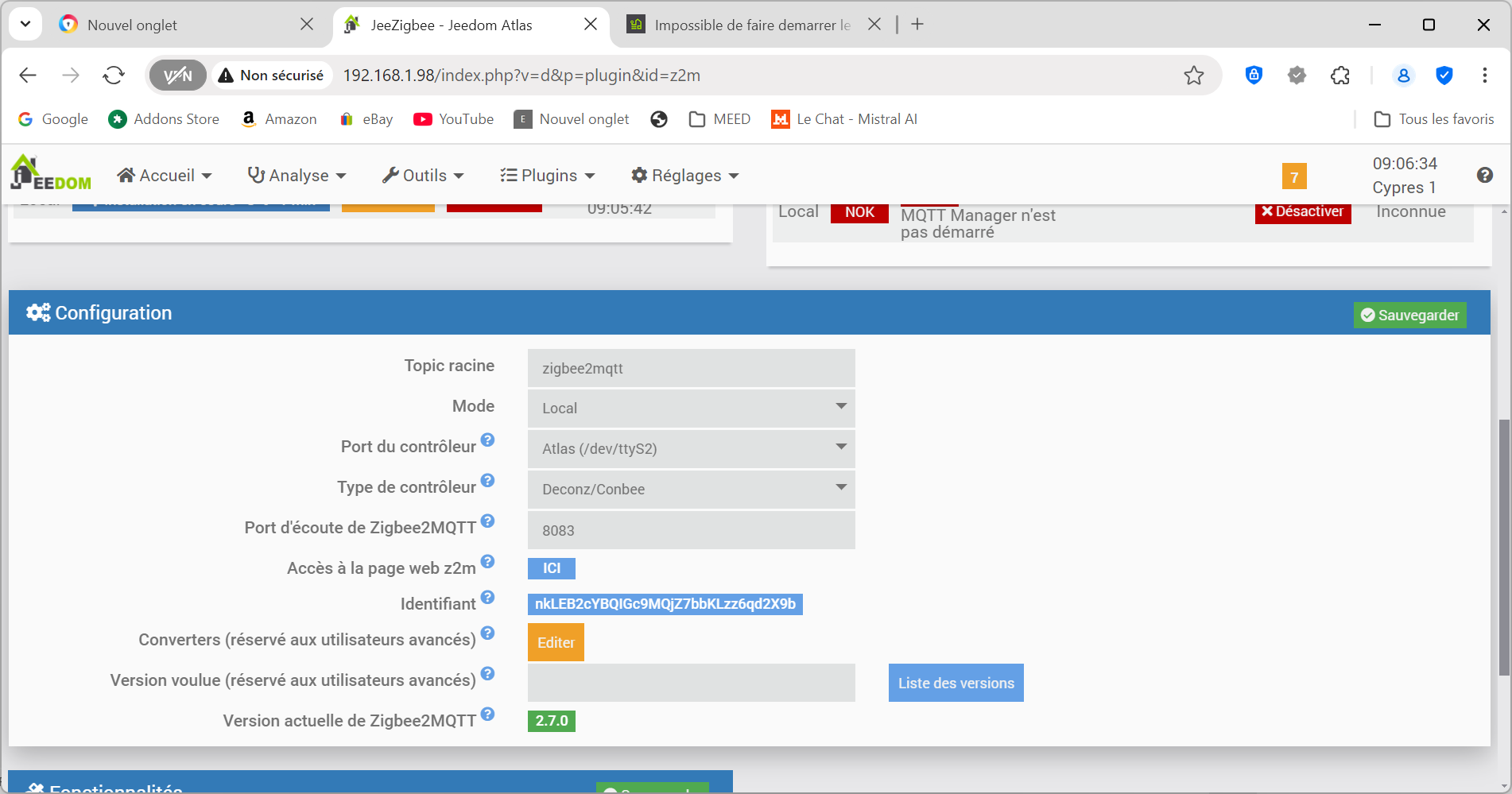 mqtt manager n’est pas démarré dit le premier écran, il faut aller vérifier